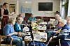 Diskusjonen gikk livlig rundt bordene på Fromreide dagsenter da tre elever fra Hop videregående skole utfordret brukerne til en runde med kviss.