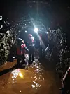 Med sjøstøvler og lommelykter stilte spente grottevandrere opp for å utforske «grottesystemet» på Herdla. Det ble litt skummelt og spennende - men først og fremst veldig gøy!
