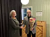 HEDRET: Varaordfører Rosalind Fosse gratulerer Jan Solli i Dugnadsgjengen med tiårsjubileet.