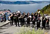 KOMMER TIL KIPO: Sjøforsvarets Musikkorp er et av landets beste. Her er de fotografert på toppen av Fløyen.