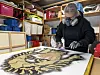 Hun lager motivene utfra egne idéer, tegner det og deler det opp i flere lag. Deretter skjærer hun hvert lag ut med fingerskapell.