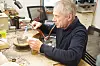 GULLSMEDEN I ARBEID: - Loddepistolen egner seg godt til kjeder og mindre ringer, sier Steinar Skogheim, som regulerer gass og trykk/luftmengde med å blåse luft.