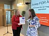 STOR GAVE: Sølvi Røssum i Askøy Røde Kors mottar 4,8 millioner kroner til et ungdomsprosjekt. Banksjef i Sparebanken SR-Bank, Anne Line Gamlemshaug, kan stolt dele ut rekordgaven.