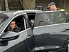 SJEKK: Anette Furevik har sikret både seg selv og sine to skolebarn på forskriftsmessig måte. Ikke rart at politioverbetjent Øystein Nordstrand er fornøyd.