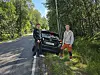 TOK DET MED FATNING: – Litt kjipt å måtte stå her og vente på bilberging, sier Marius Håpoldøy (til høyre). Til venstre: Mikal Lønøy, som var bilens sjåfør da ulykken skjedde.