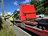BERGING: Bilen som kolliderte med MC-en blir her fraktet bort med bergingsbil.
