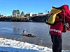 Brannvesenet øvde på redningsaksjon på den tynne isen i Storavatnet i Florvåg i helgen. - Folk må være forsiktig, oppfordrer brannmester Roger Ingebrigtsen.