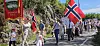 Selv uten korps ble det musikk og stemning i toget på Davanger. Senere var det leker og underholdning på menyen.