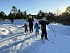 DEILIG TUR: Tre familier fra Erdal hadde tatt turen i lysløypen lørdag. Det ble en nydelig avslutning på vinteruken.
