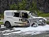OVERTENT: En varebil fra et askøyfirma ble utbrent.