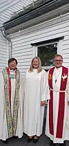 VIGSLET: Hildegunn Norbakken flankert av biskop Ragnhild Jepsen og prost Jan Tommy Fosse.