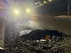 De store nedbørsmengdene mandag har ført til at det store hullet i veibanen ved utkjørsel fra Storebotn næringspark ertilbake.