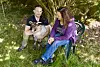 BEITER ALENE: Bælla får litt ekstra omsorg etter at hennes søster ble tatt av tyver. Her er hun sammen med gårdseier Kim Mundheim og matmor Åse Nilsen.