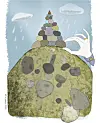 BYGDENS RAMMEVERK: - Det vi frykter, er at noen plukker ut en av de største steinene og varden raser. Det er skremmende for alle oss som er fra nordre Askøy, sa Sandra Haugland, og illustrerte poenget med en tegning laget forrige gang det var snakk om skolenedleggelser.