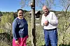 LOKKER MED NØTTER: Jonni Karlsen og kona Supakana Karlsen har daglig besøk av ekorn på fõringsstasjonen i hagen på Follese.