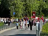 HER KOMMER TOGET: 17. mai toget på Kleppe skole er på vei opp mot skoleplassen