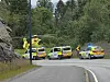 LUFTAMBULANSE: Nødetatene rykket ut med stort mannskap da meldingen om en alvorlig MC-ulykke om rett over klokken 09 mandag.