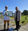 OVERREKKER PRISEN: Her overrekker Jan Nordstrøm (t.v.), leder for Naturvernforbundet Askøy, prisen til André Namvall