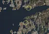 FUNN: Den nederste sirkelen indikerer båtplassen til den savnede Oddvar Wika. Den øverste sirkelen viser stedet hvor en person er funnet død.