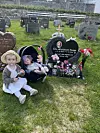 SAVN: Lillesøstrene Mille og Emmie ved Ellas gravstein på Tveit kirkegård.
