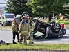 En bil havnet på taket i Kleppestø. To eldre personer får sjekk av helse på stedet. Én er sendt til legevakt for sjekk.