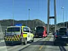 Tre biler var involvert i en kjedekollisjon på Askøybrua. Det har medført lange ventetider i trafikken.