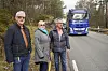 DÅRLIG VEISTANDARD: - Vogntogene tvinges til å kjøre helt ut på veiskulderen på grunn av den smale veibredden, sier Norvald Fauskanger (til venstre). Til høyre: Jane Haugland og Asbjørn Skråmestø.