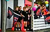 FLAGGBÆRERE: Klubbens jenter fjorten er flaggbærere før innmarsj til A-lagskampen for herrene.