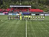 SEIER: Askøy Fotball kunne ta med seg en viktig 2-1 seier mot Fyllingsdalen. Her hilser spillerne og trenerne på hverandre like før avspark i kampen.