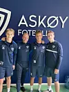 NYE: Tre ungdommer tas opp for å trene med A-laget til Askøy Fotball. Trener Tommy Knarvik flankeres av fra venstre Espen Kjørsvik, Lucas Larsen og Mats Johnsen.
