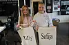 EGEN DESIGN: Lilly og Sofija viser stolt fram nettene de har laget.