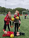 GØY: Malene Træet Silden, Live Henriksen Beck, Karine Eikevåg Linge, Saga Holmstrøm Fromreide og Maren koser seg på fotballskole.